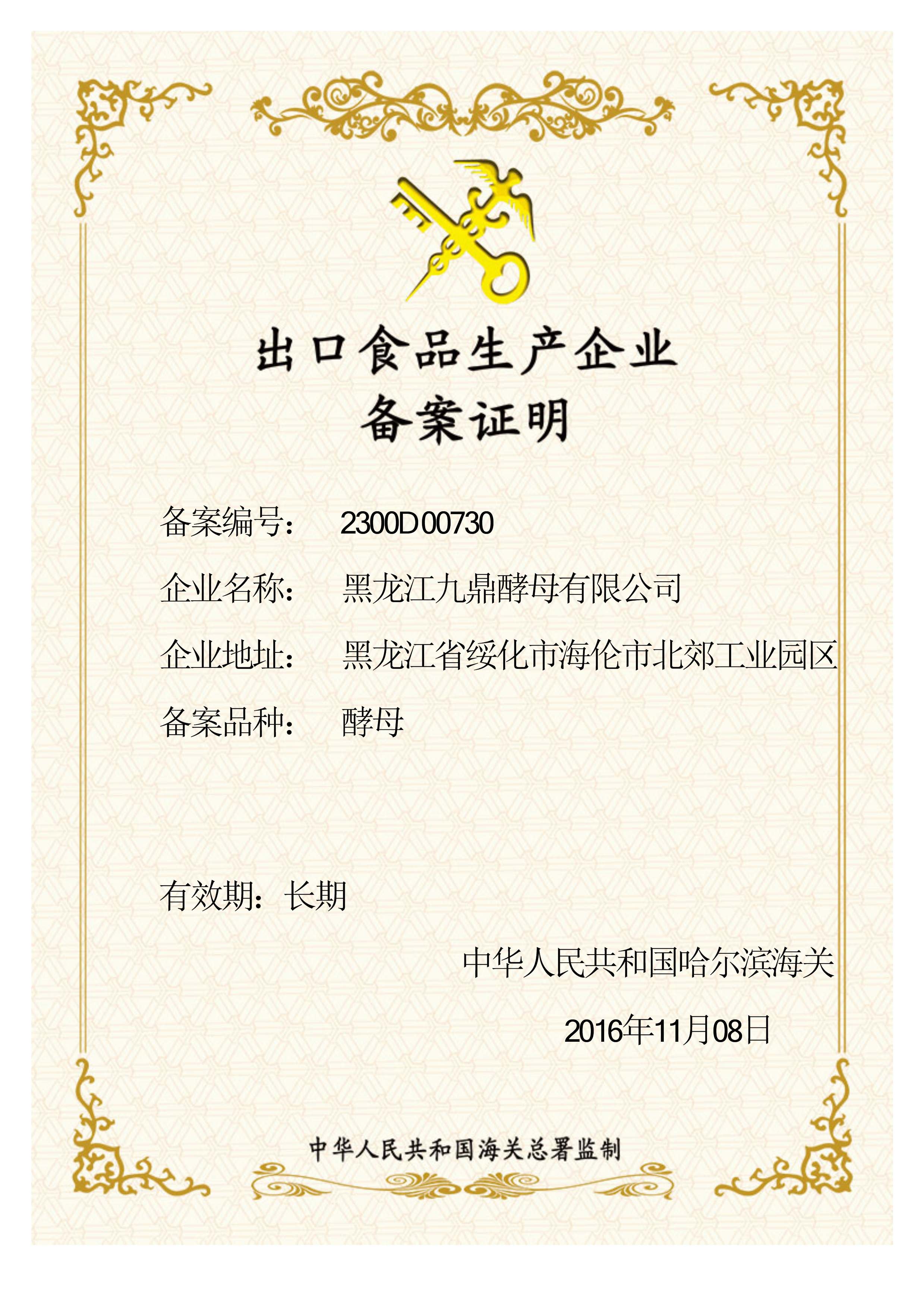 出口食品生产企业备案证明